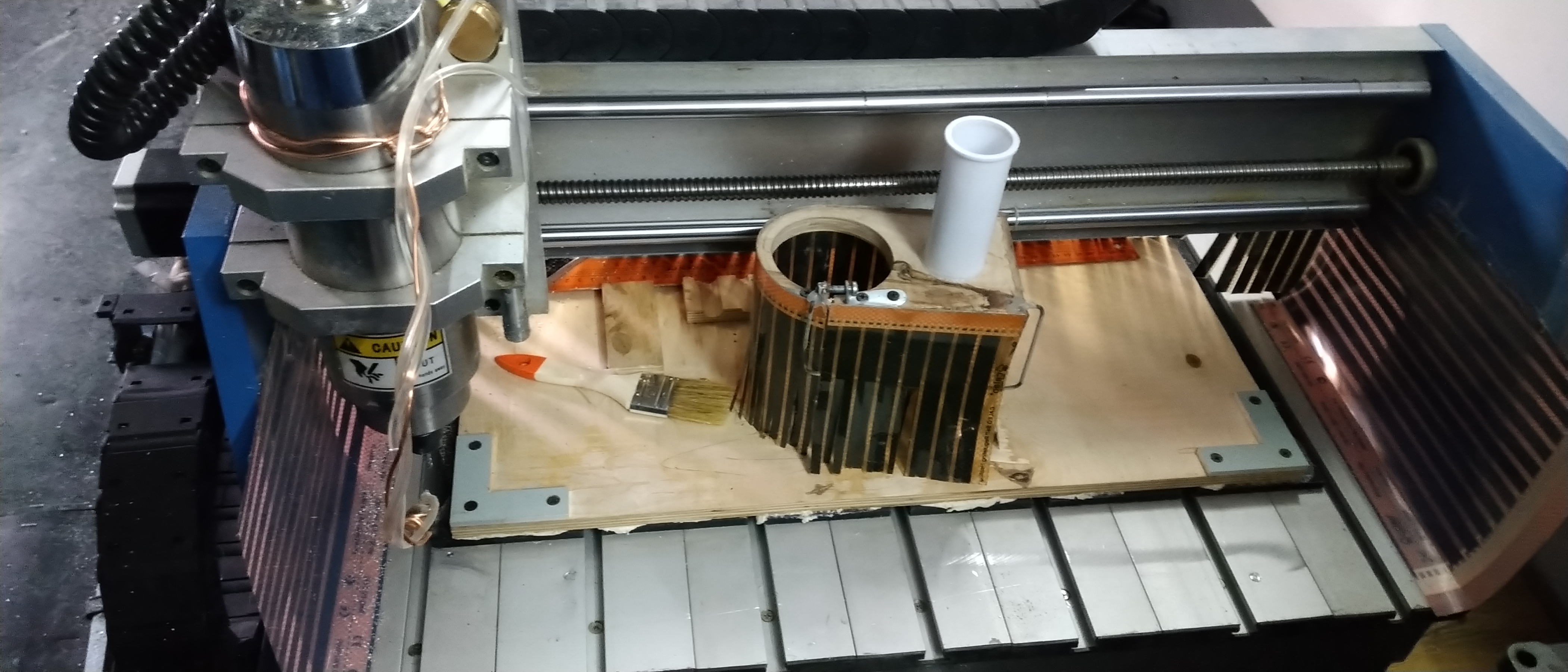 -срезал часть резины (убрал ванную) и наклеил фанеру 15 мм и так же прошел в 3 захода фрезой 8мм с шагом 4 мм со съемом 4+4+2мм