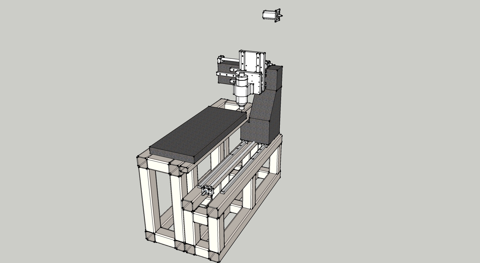 Продумал и такой вариант. Хочется маленький, да удаленький. Я конечно понимаю, что самый маленький станок это тот которого нет :hehehe: . Пока эскиз. Станок получается 1235Х440мм 850мм от пола до стола. Высота под свой рост, что бы не ползать возле него. Вес экономится , но всё равно примерно в районе 200-250 кг. Тут станок и рама под него как одно целое. Труба 80х80, толщину не указываю, так как скорее всего трубы бетоном залью. Сборка по большей части болтовая. Литьевых три простых части: стол, портал и стойка портала. Рабочая зона 750х220х150мм.