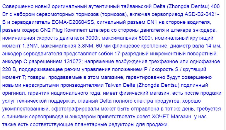 Это я сервопривод Delta 400W заказал, какая-то скидка у них, 20т.р. за комплект с доставкой. Но наверное, рискую нарваться на доп. таможенный платеж. Будем посмотреть!