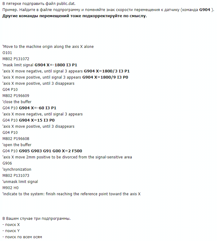 Добрый день! Подниму темку. Возникла такаяже ситуация, все поправил в файлике, но теперь другая проблема. Станок после того как обнуляется, последний откат делает не в ту сторону! Ни как не могу побороть! То есть станок едет в право к концевику, касается его , откатывается чуть назад (в лево) потом едет снова к нему, и вот последний раз касаясь концевика, откатывается не в лево как надо бы а в право, как если бы концевик был с лева. Как решить эту проблему? В файле правил и и так и эдак, ничего не помогает
