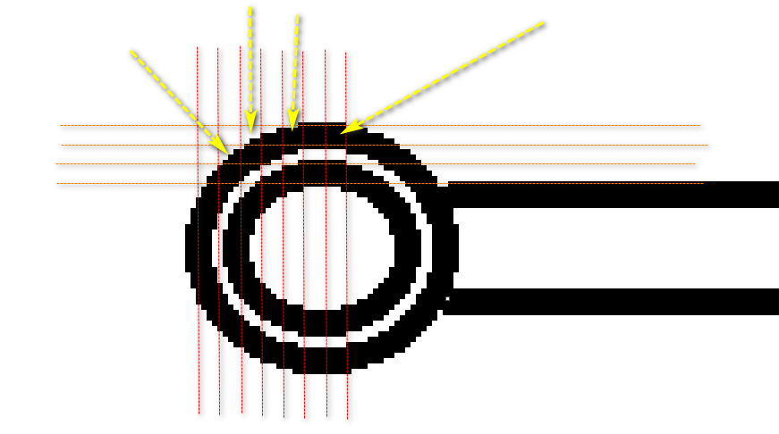 Я не растрирую Gerber и веду расчёты в векторном режиме для растра, по этому могу нивелировать ошибку отдельной засветкой контура или по медленному уменьшать шаг и(или) диаметр.