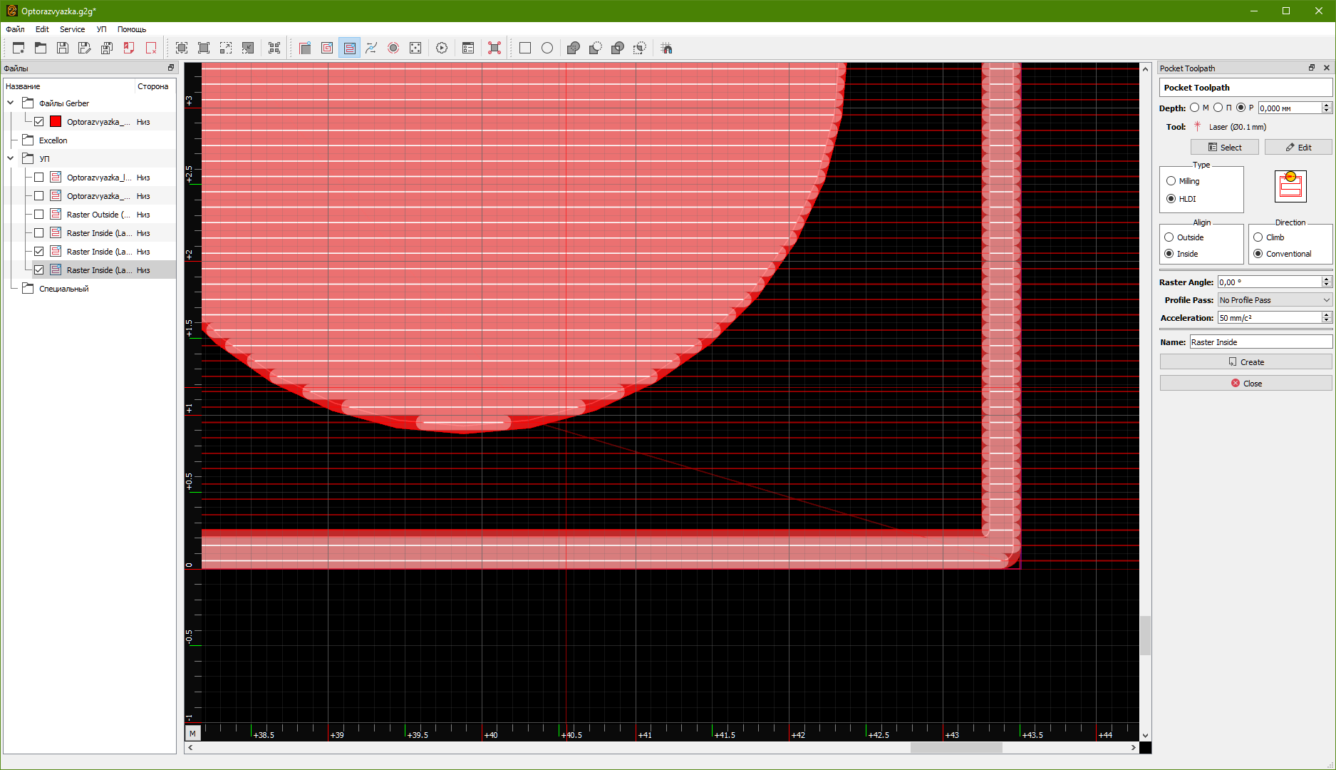 2) реальные диаметры точек лазеров и отступы в подаче растра нужно уже экспериментальным путём подбирать, как и скорости подачи, ускорения в УП в соответствии с применённой мощностью в лазере или в зависимости от этой мощности.