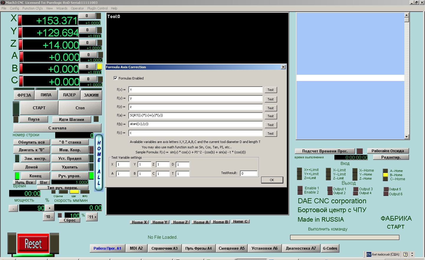 Здравствуйте Сергей. Подскажите можно ли в Вашей программе организовать изменение координат по заранее введенным формулам.. В Mach3 это называется формулы осей.Но к сожалению не все математические формулы там поддерживаются, меня конкретно интересует формулы связанные с atan((X).(Y)) для расчета координат Scara подобных машин и других принтеров с различной кинематикой ... Пока же приходится экспериментировать с Экселем, но это для сложных траекторий путь в никуда... Слишком долгие расчеты- переводы ---- вот как это выглядит---- https://www.youtube.com/watch?v=zI5IbLlW5Gg&t=1s