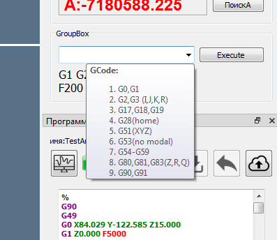 Список поддерживаемых G кодов отображается при наведении на поле ввода G комманд: