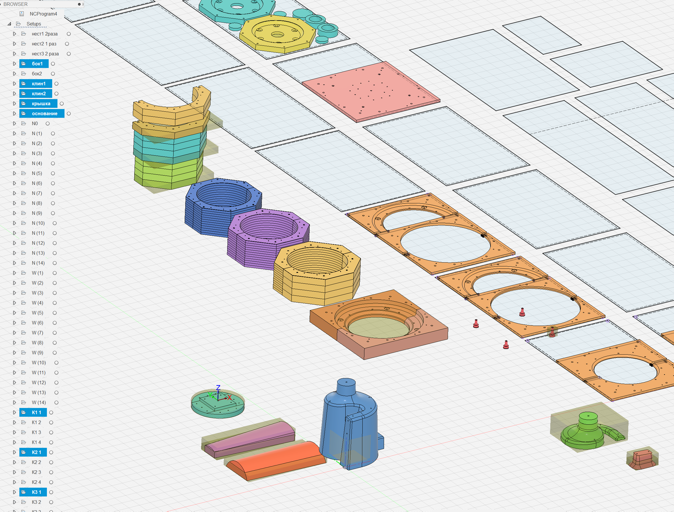 Я еще недостаточно вкурил Fusion-360 :/hmnijp писал(а):Так то вроде любой вменяемый CAM позволяет делать паттерны для разных деталей пачками.