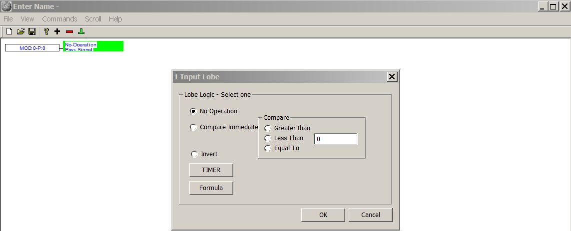 Далее “Imput Lobe”- “No Operation” и “Imput Lobe” - “Formula”. Записываем А/0.6 и закрываем долю(lupu) терминатором “ModBus” как показанно на скрине.
