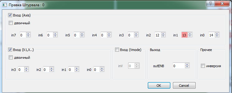 Также везде при выборе входа выход отображается его состояние, чтобы можно было быстро проверить его работоспособность.(например на снимке вверху вход in1 (13))