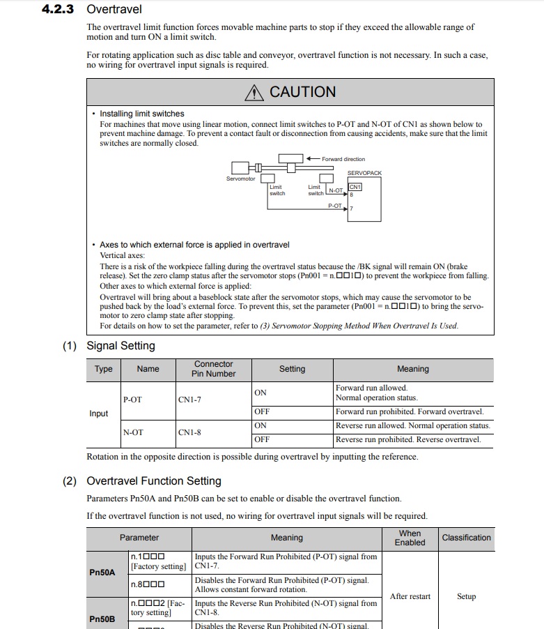 Это тебе думаю не поможет. POT/NOT это ограничители. Как только срабатывает этот сигнал, можно ехать только в противоположную сторону. В 5й сигме не ковырял. То что я описал, делал на 1й Сигме когда на токарном притирал Зедекс ;)