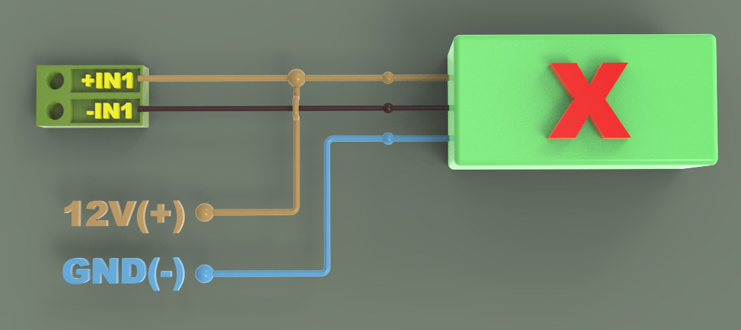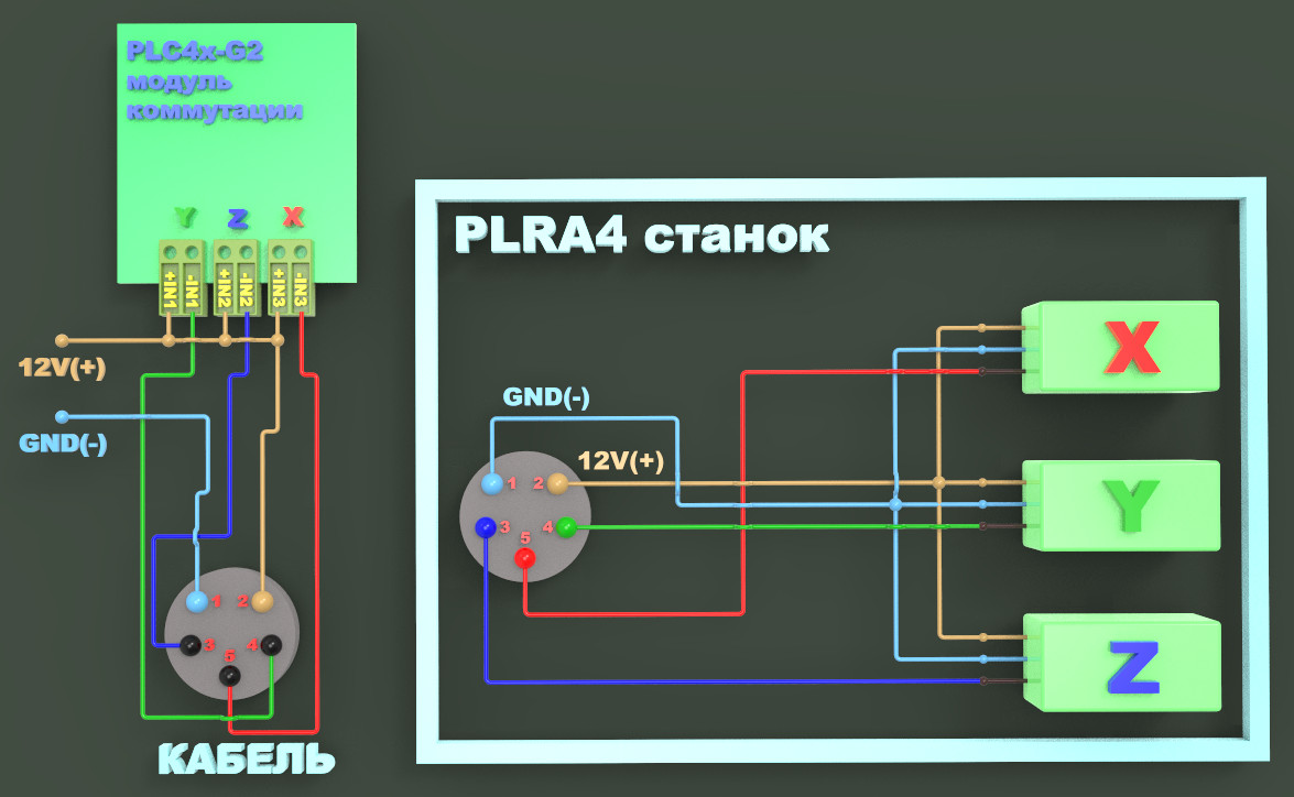 На схеме видно, что к контролёру подключается пять проводов по одному сигнальному от каждой оси, так же два провода. Один GND(-) и 12В (+)