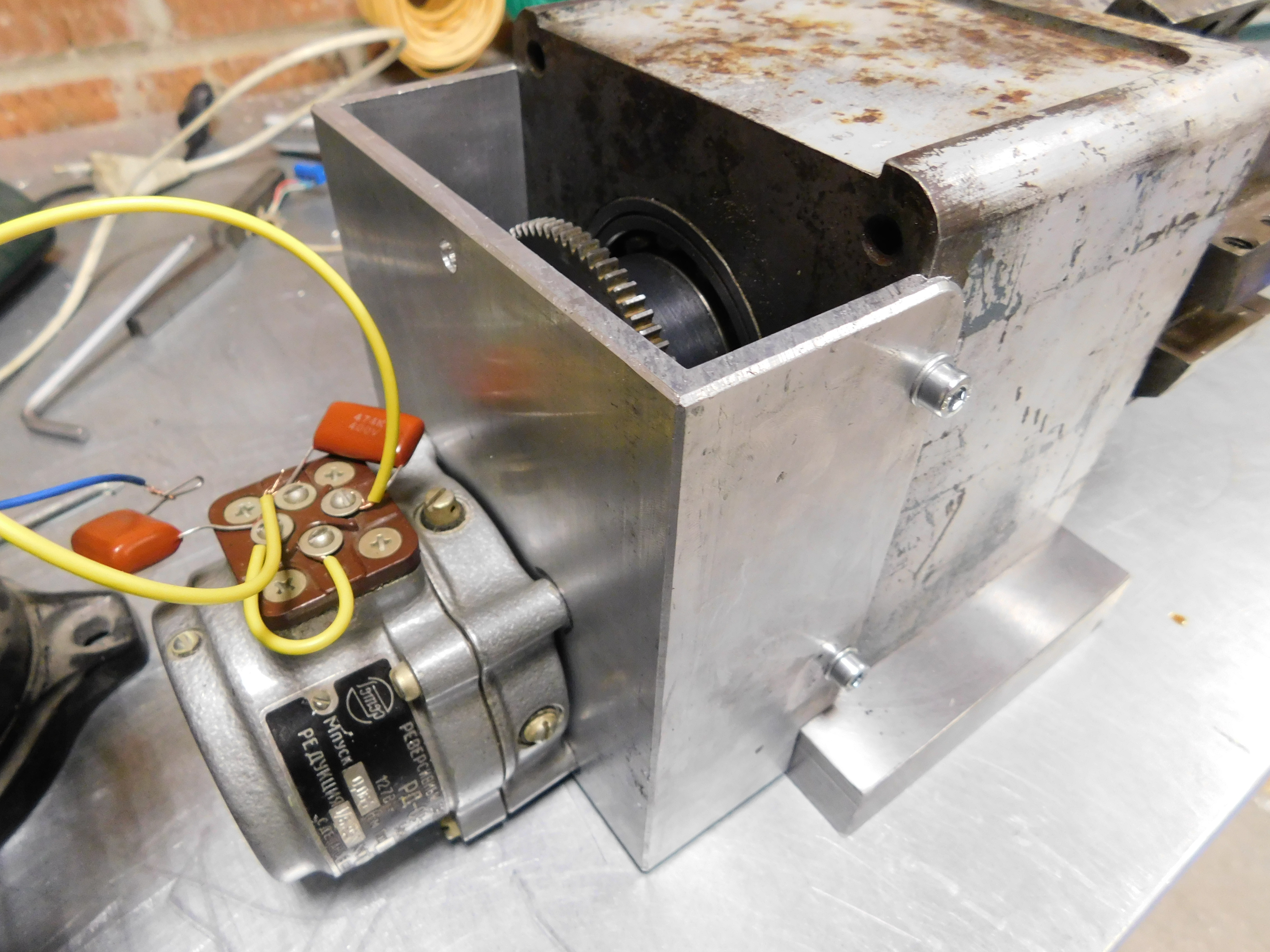 3. Ведомая шестерня (которая на шпинделе)была в убитом состоянии, примерно 1/6 часть зубов были сбиты. Восстанавливал очень аккуратно болгаркой и надфилями. Понимаю, что в идеале нужно делать новую, или искать её на том же директлоте. Но пока так. Главное что оно работает.