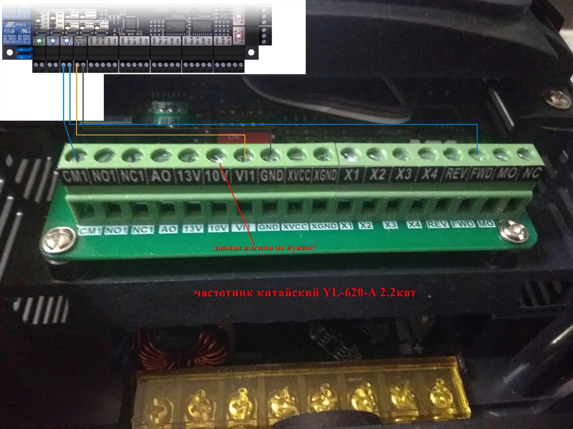 всем привет, прощу помощи у знающих людей, подключаю частотник к SM2.5, делаю это впервые, возможно кто-то уже сталкивался с такими частотниками и сразу знает ответ, верно ли я указал на картинке?