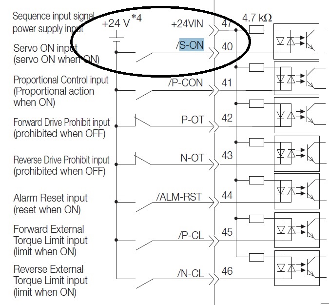 Часто на сервоусилителях есть внутренний источник питания для таких входов, как Servo-On