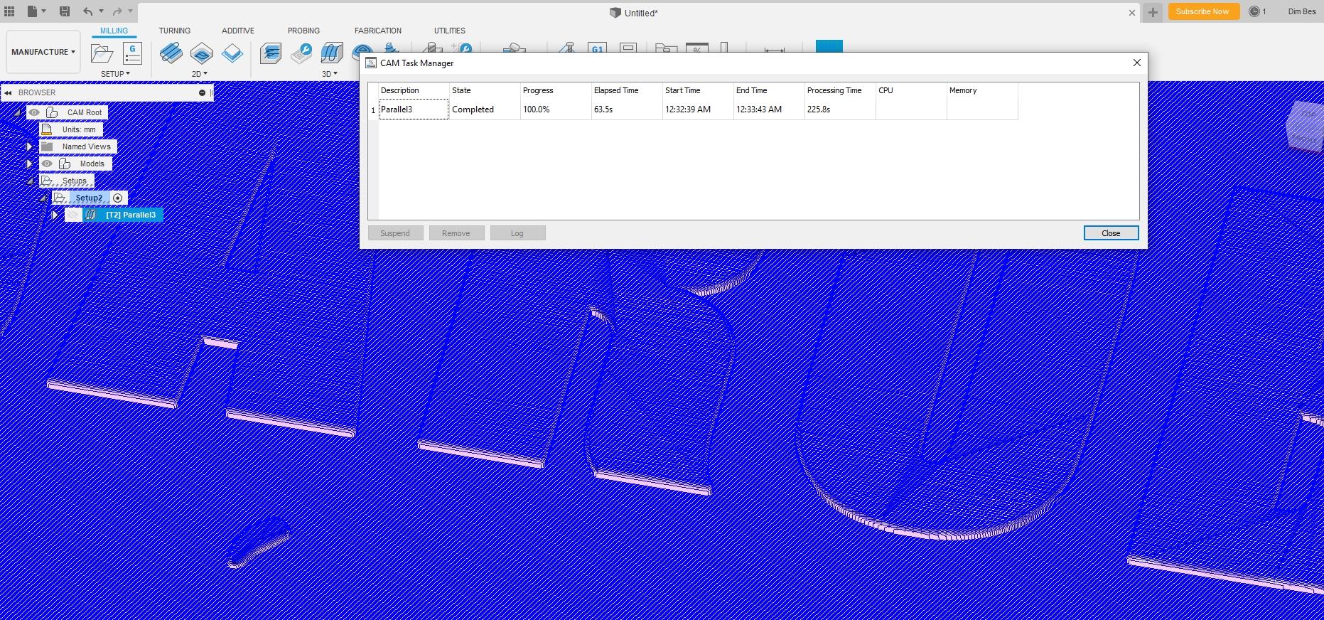 может, если bottom hight ниже, а так же разрешено выходить за контур детали (tool containment - tool outside boundary - по умолчанию он center boundary, то есть ось фрезы не покинет сток контур)vezd писал(а):4) Может ли при обработке 3D Adaptive Clearing конец фрезы опуститься по Z ниже чем нижняя часть конуса, чтобы конус отделился от заготовки? У меня этого не получилось.