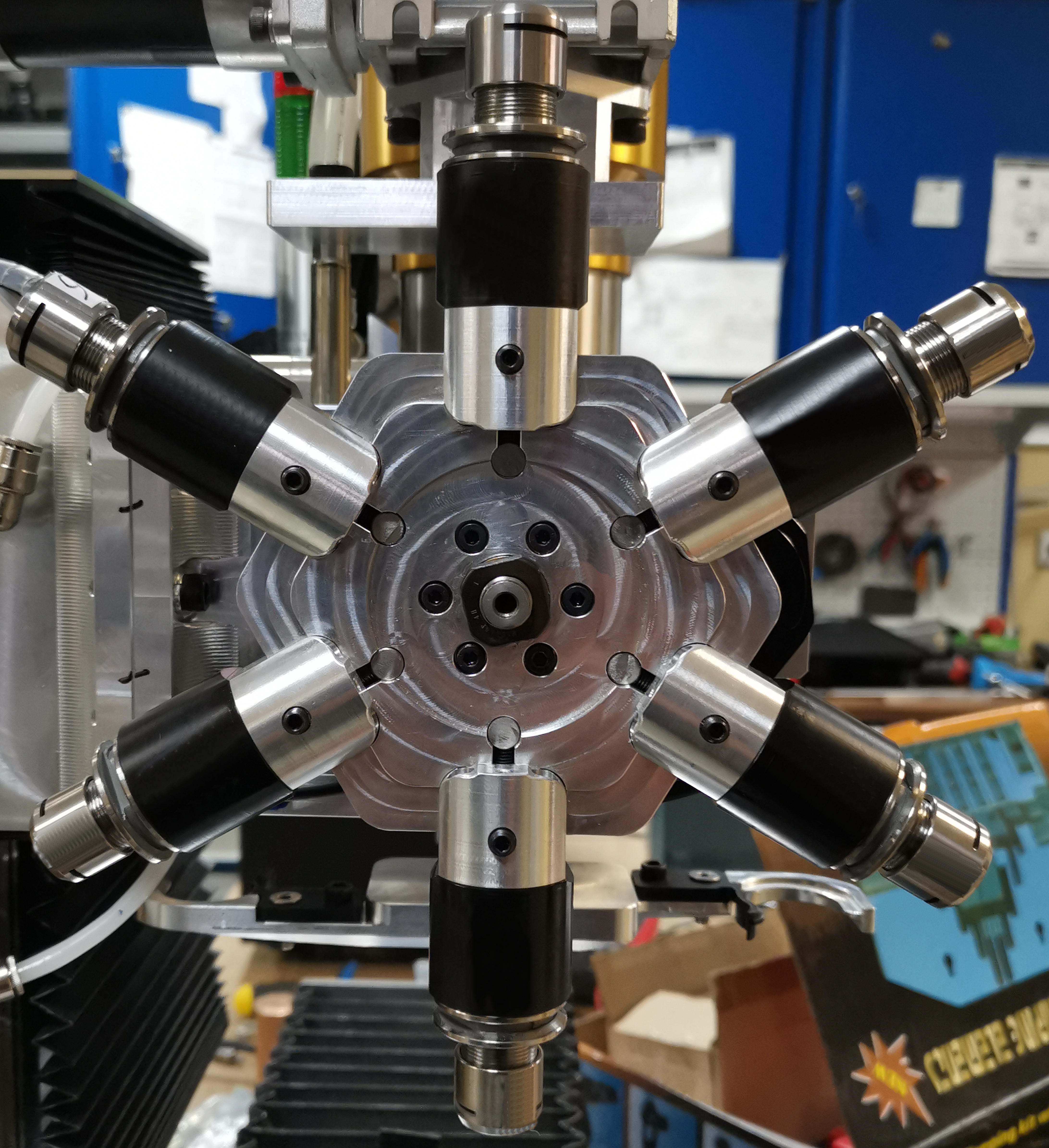 Возможность закрепления в магазине до 6 инструментальных оправок, оснащенных режущим инструментом, позволяет упростить работу оператора и автоматизировать процесс обработки изделия. Защитный корпус со вставками из ударопрочного стекла с кнопкой экстренной остановки защищает оператора от отходов обработки.