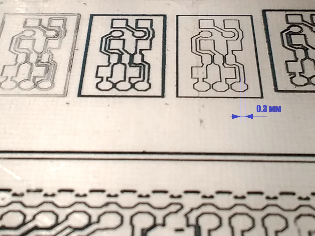 Даже при простом повторении той же трассировки, тем же гравером с теми же параметрами резки, на другом участке платы получается по-другому.