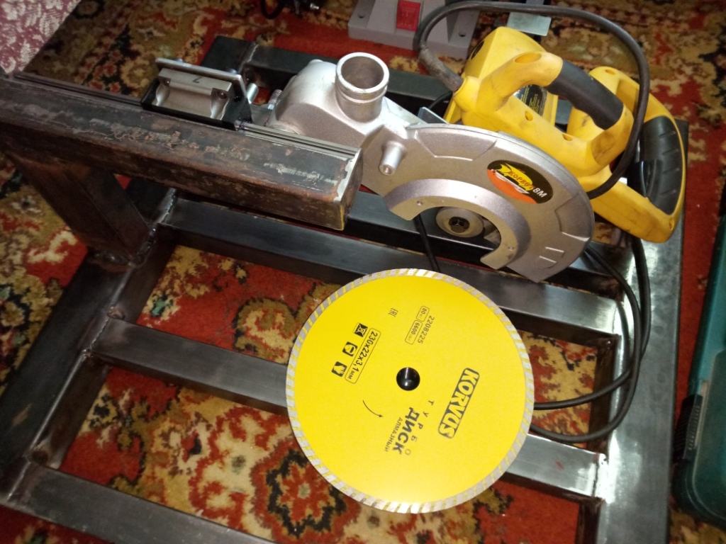 Этот чуть чуть не влазит в мою самодельную "обезьяну". Жаль. Я так хотел им пилить ровненько как и металл. В болгарке нормально идёт, легче чашки, но руки крюки, идеального пила не будет. Режет отлично. В общем с гранитом легко работать. Пыльно правда и грязно если сверлить с водичкой, брызги нормально так летят :hehehe: .