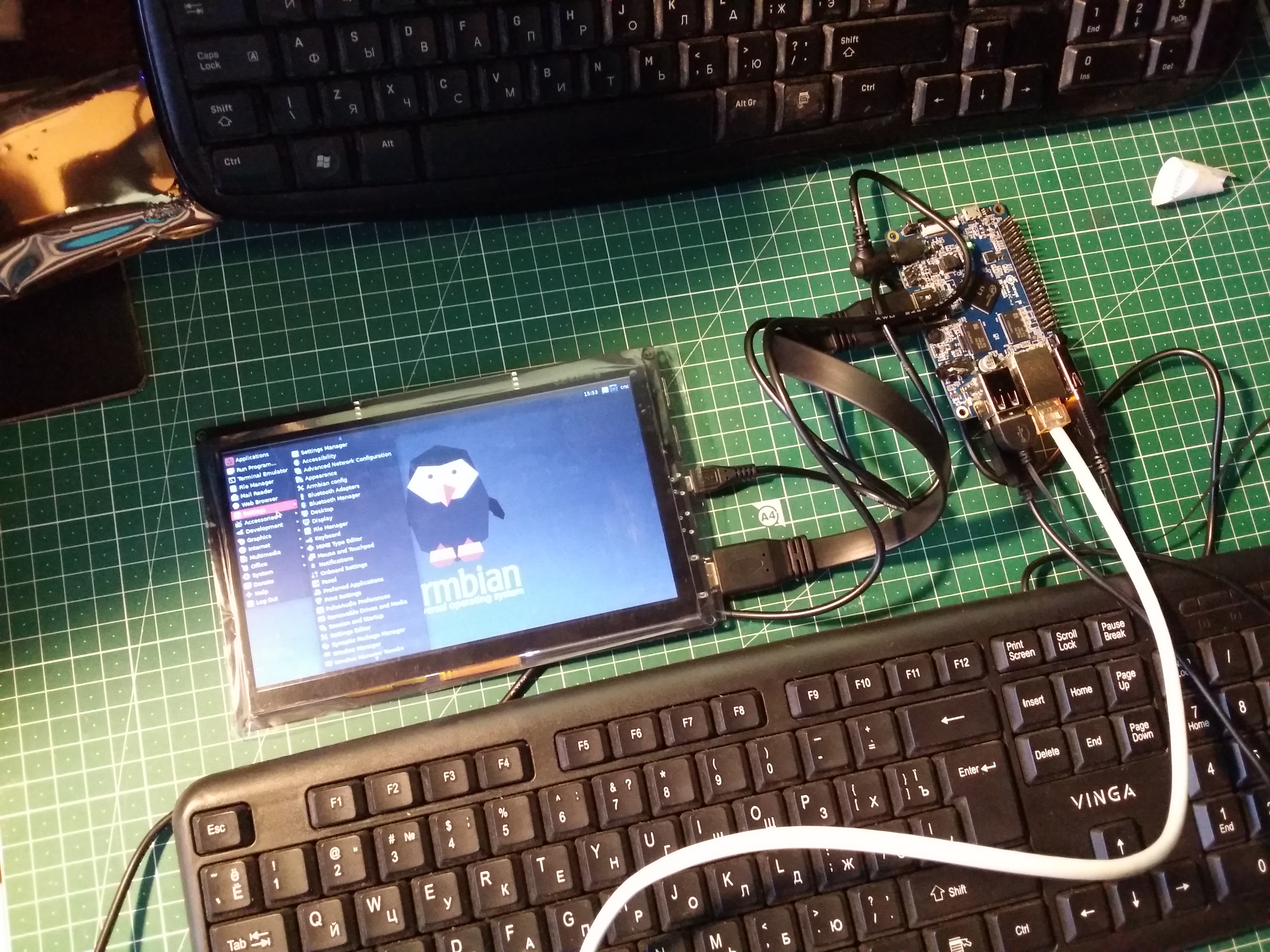 Что-бы проверить работоспособность OPi PC (вывод через HDMI на 7" 1024*600 + touch, usb, клавиатура, мышь, интернет и прочее) и не переделывать потом.