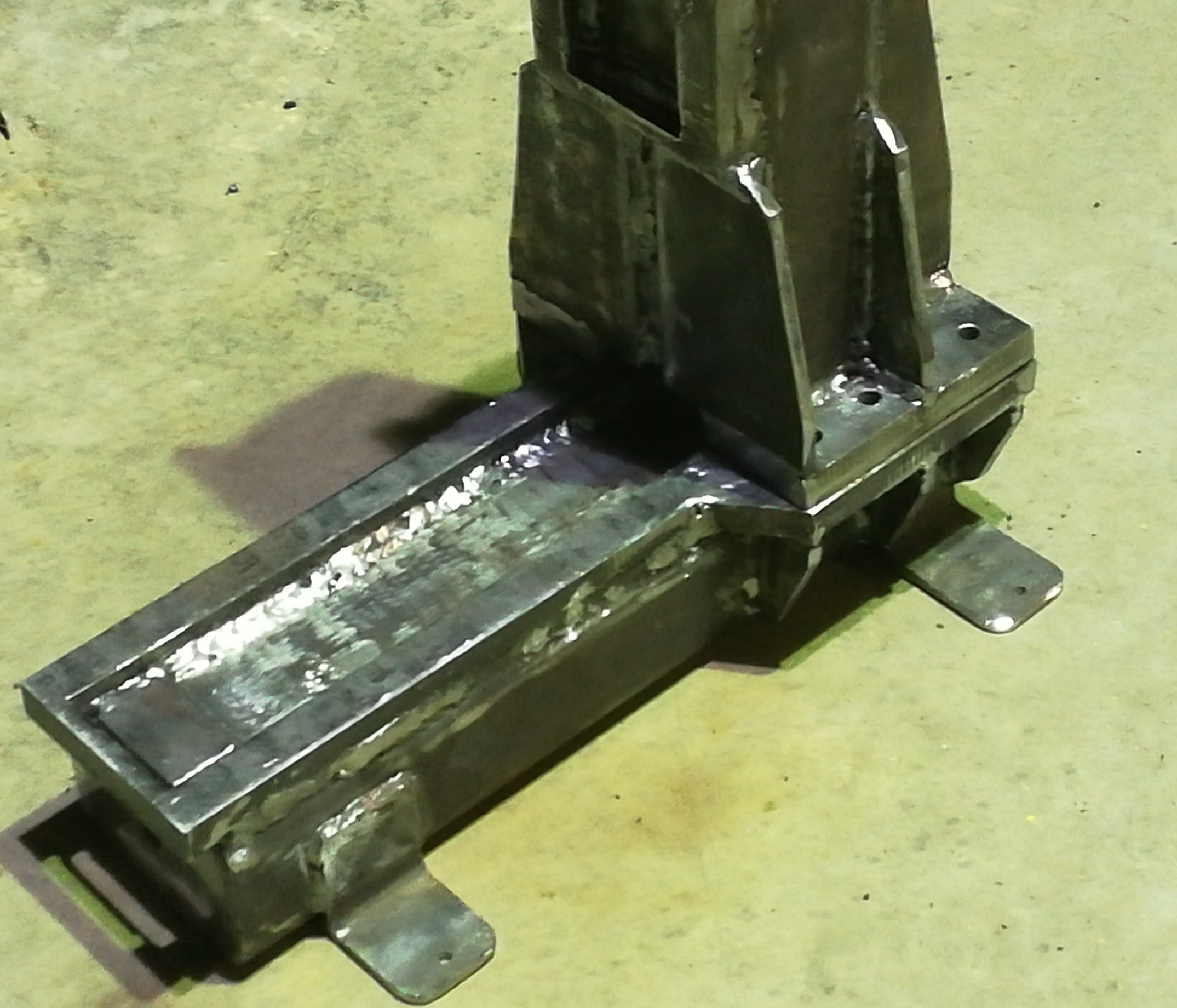 Колонну сварил и зачистил. Чуть изменил конструкцию в процессе сварки. Все технологические перемычки срезал, а одну верхнюю оставил в качестве ручки. Очень этому рад остался, без ручки эту штуку переносить жутко неудобно. Уж больно тяжеленная получилась.
