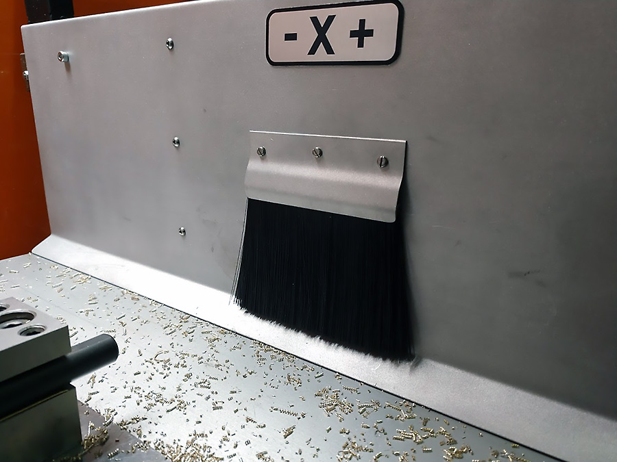Ну и маленькая модернизация, в виде приделывания щетки что бы закрыть отверстие куда проходит задняя бабка, бесила стружка которая летела сквозь него