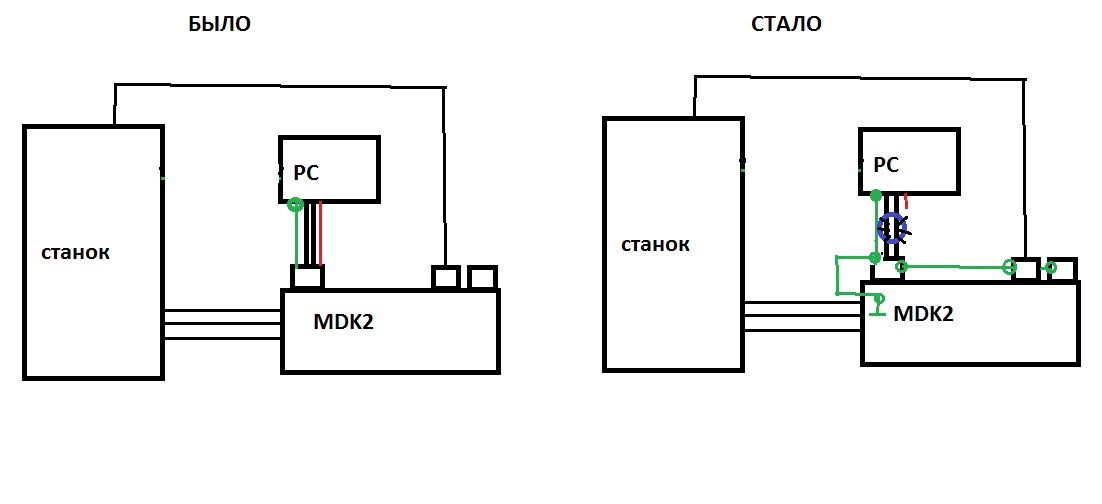 Я понял вашу мысль - заземлить экран на USB. Правда, к своему стыду, я не знаю куда он подключен ни со стороны РС, ни со стороны MDK2.