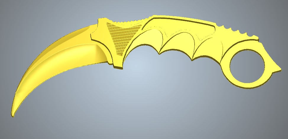 Зачем мне контур - мне нужно 3D спуски нарисовать на готовом контуре, выдавить клинок и на нем уже отсечь спуски с одной стороны, вторую сторону сделаю зеркально переворотом