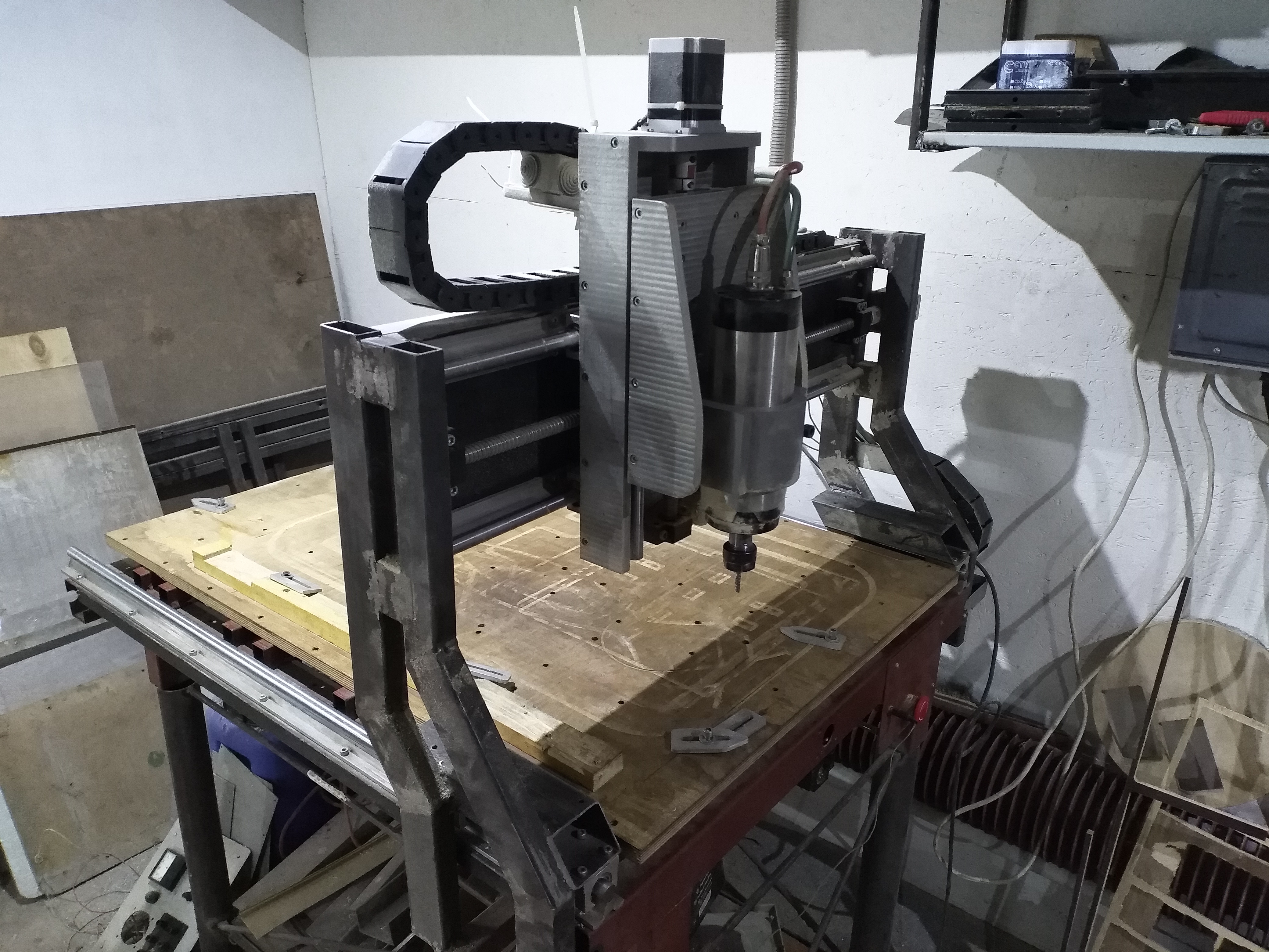Всем привет. Имею станок собранный в основном из профильных труб, ось Z из алюминия. Направляшки по всем осям цилиндры на опорах 16мм (1000,800,350мм) ШВП по всем осям 1605 - стандартный набор из китая. При всем этом дрожит как холодец, слабые места знаю (стойки портала и перемычка для гайки оси Y). При смене направления например угол 90гр отчетливо видно дрожь, а на резе затухающая волна. Есть желание сделать станок жестче без серьезных вложений. По сути останется только ось Z в текущем виде, направляющие и винты с двигателями. Переделать планирую раму все из той же черной трубы 80х80, стойки портала планирую фрезернуть из алюминия 30мм толщиной + ребра жесткости, перемычку под гайку так же из алюминия 20мм, а сам портал из трубы 80х40 в 3 слоя. Если получится под рельсы на трубы наварю полосы 6-8мм и отдам на фрезеровку чтоб хотя бы малось ровно было.