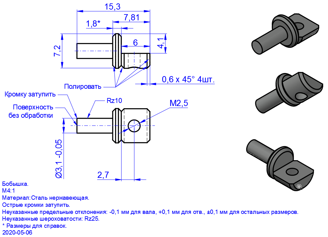 Чертежи в ACad. Бобышка в 3D, могу сделать STEP.