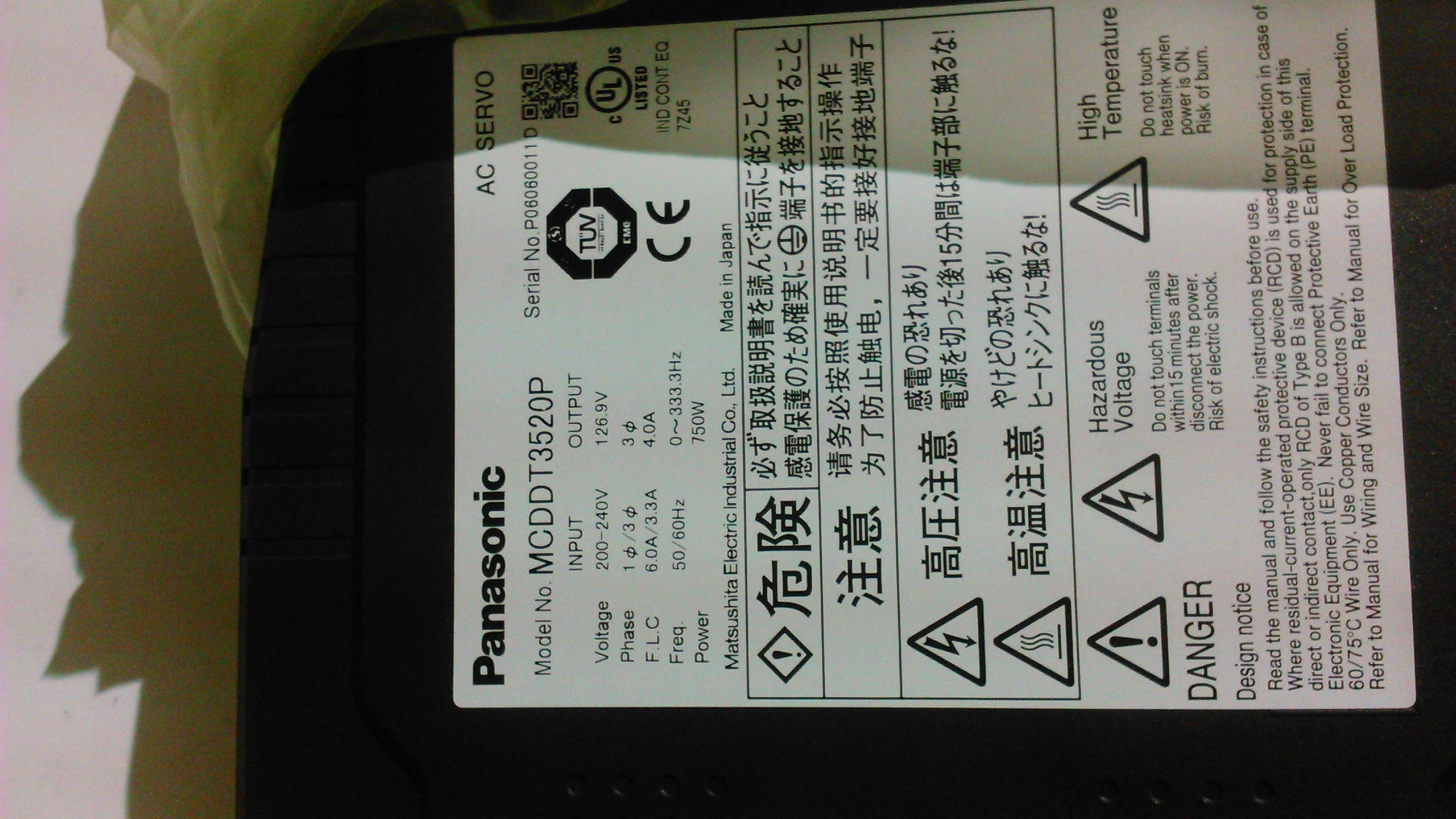 mmg писал(а):Новые в коробке Сервомотор Panasonic MCMD042P1S и сервоконтроллер Panasonic MCDDT3520P