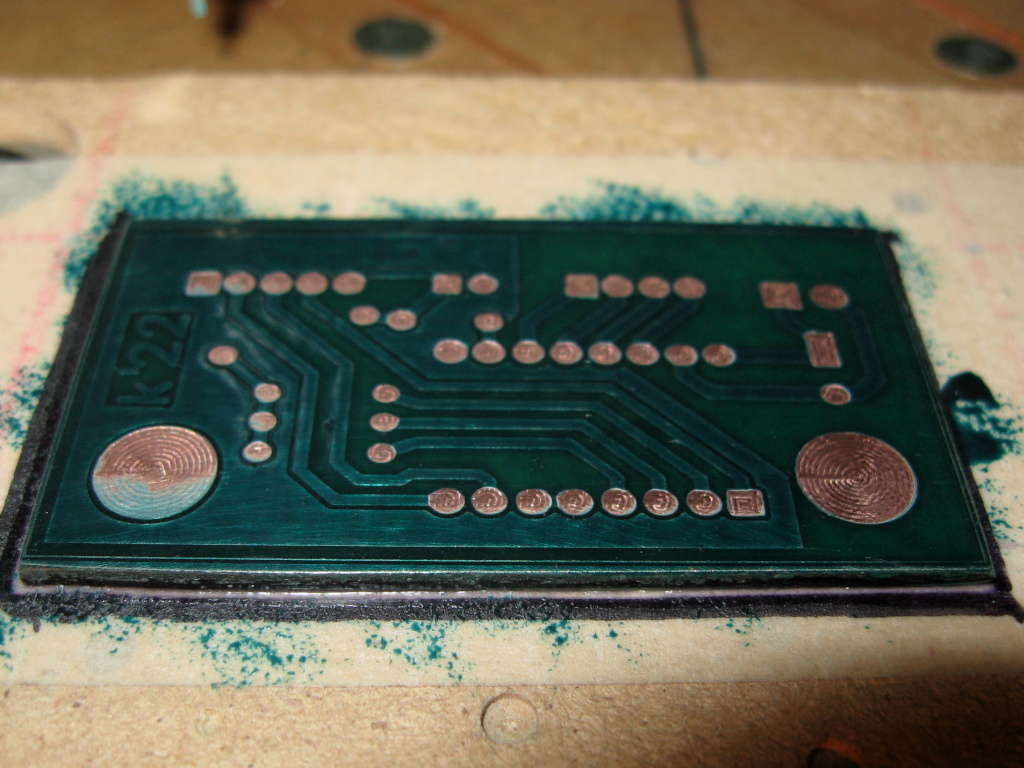 Попробовал два варианта: гравёр-перо с пяткой 0.3мм, 30 градусов, пружинка условно средней жёсткости(при обжатии на 0.5мм даёт примерно +24 грамм "давления" на печатку, максимальное из тех что у меня есть - 30г, минимальное - 13г) и гравёр-перо 0.8мм, пружинка послабже(+16г при обжатии на тех же 0.5мм). При снятии маски первым вариантом вообще никаких хлопьев меди не было, всё чистенько, но поверхность слегка ребристая, как будто продавлен рисунок проходов(да, хлопьев меди точно не было), гравёр не шибко острый был, но и не совсем тупой, проверял потом его на фрезеровке самого рисунка дорожек. А вот со вторым я совсем не понял: поверхность гладкая, чисто рисунок движения гравёра, но попадаются отдельные(!) хлопья меди, при фрезеровке обжимался гравёр формально на сотку больше чем гравёр с пяткой 0.3мм, толи это хлопья от первоначального врезания толи ещё что-то :wik: В общем, не понимаю, стабильного результата добиваться подбором жёсткости пружинки или высотой фрезеровки можно всё зарулить? Или гравёры может чутка иначе подточить?