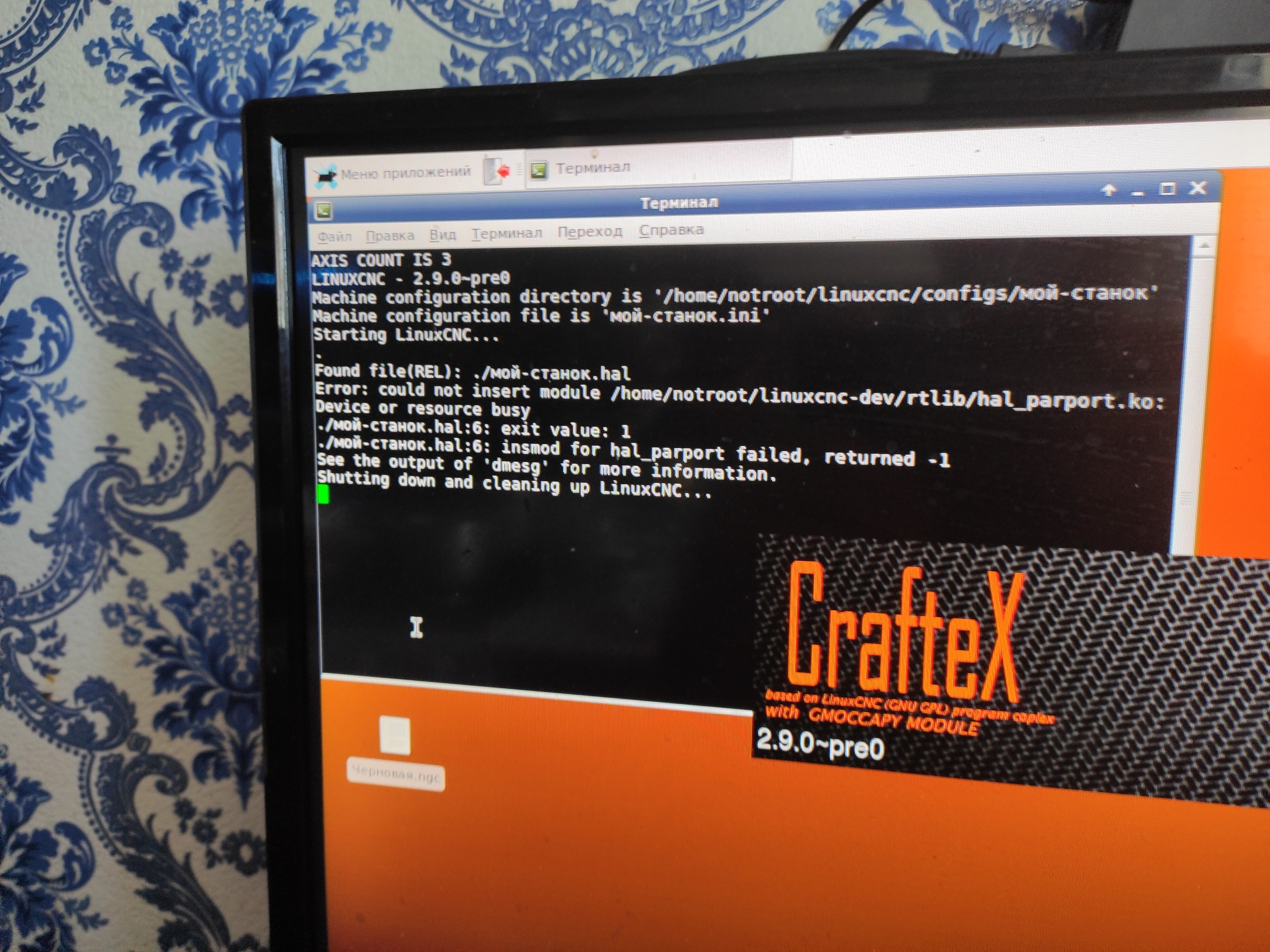 пишет что параллельный порт занят. уже запущен linuxcnc может быть?