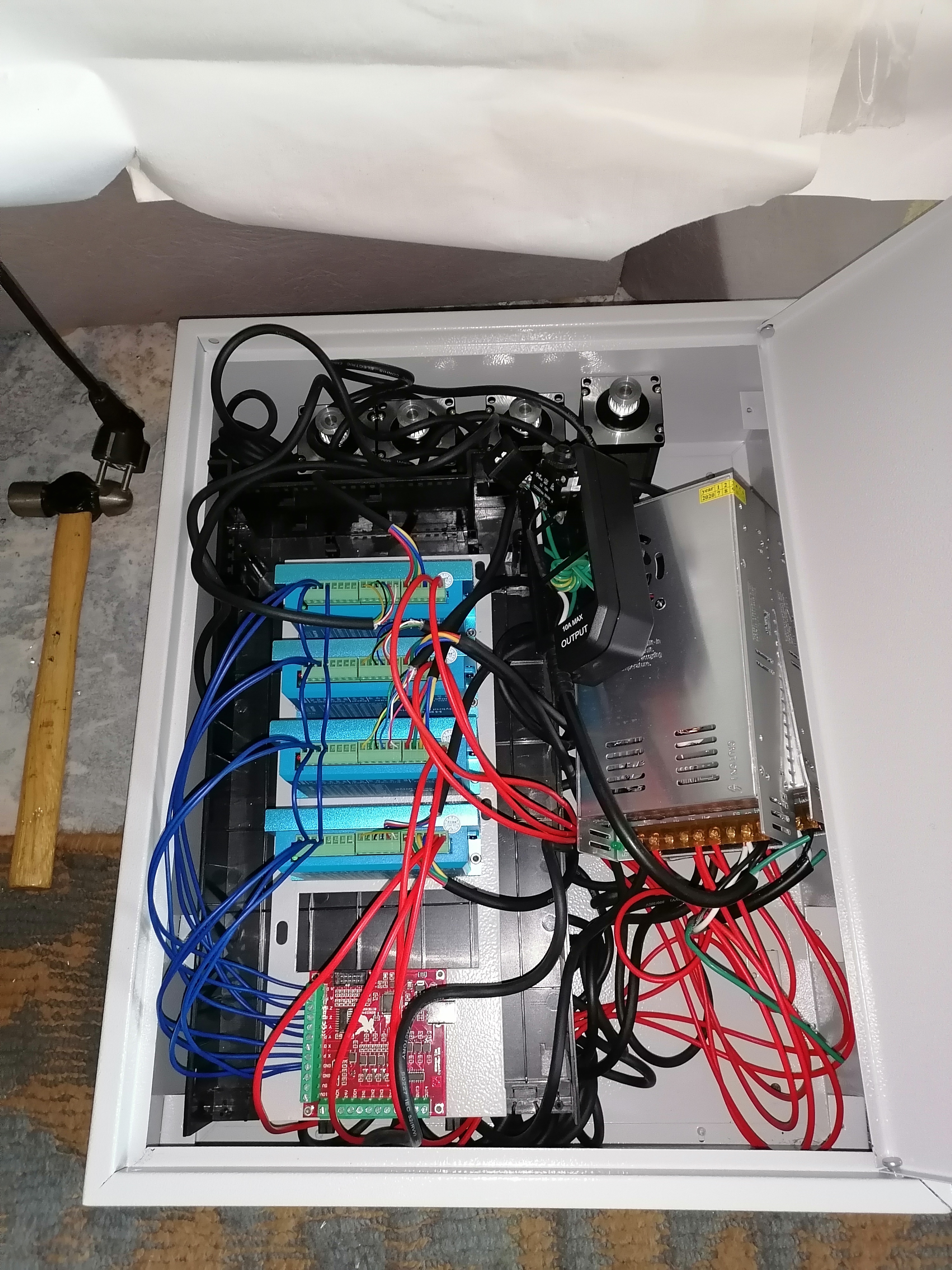 Дошли руки до электронники, собрал тестово всё на столе и включил. Всё заработало, двигатели смог покрутить клавиатурой но через пять сек вылезла ошибка и всё, потом решил открыть сначало мач3 а потом подключить уже юсб и вроде ошибка не вылезла и мог сколько угодно играться двигателями с клавиатуры но только я попробовал поменять настройки в мотор тюниг и опять начала вылазить ошибка 9991. Короче времени мало было т.к. собираю станок у родителей в подвале поэтому всё сложил в ящик и поехал домой.