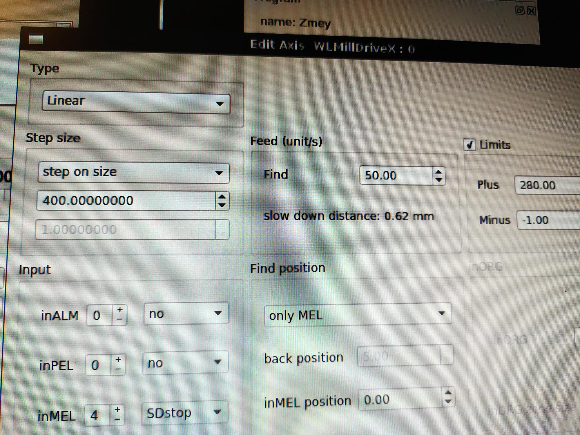 И вот попробовал настроить Ось по ускорениям и скоростям и запутался в параметрах.