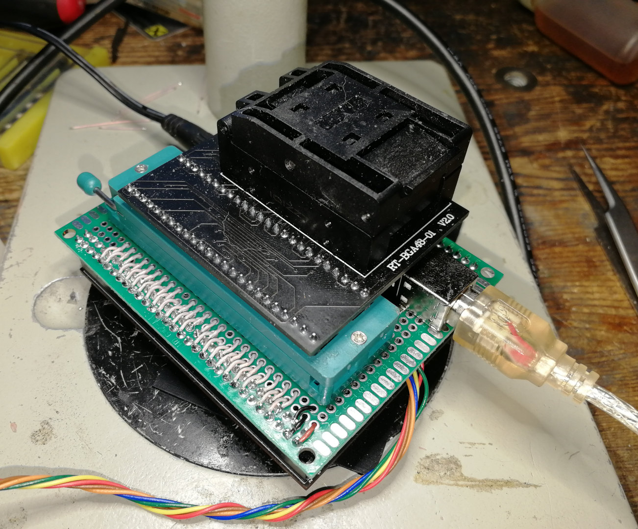 экспериментировал как-то с прошивками MR-J4-B и по-дурости затер не тот сектор в флеше - серва моментально окирпичилась. микросхема флеша с параллельным интерфейсом, BGA48 0.8mm. программаторов у меня отродясь не было и не особо то и нужны. простых путей не ищем - купил бга панельку на переходной плате с дип48, зиф гнездо дип48, usb-uart и заколхозил это все на макетке мгтфом