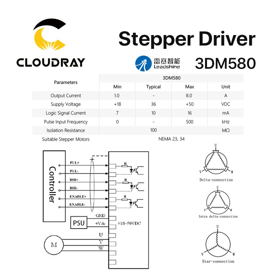 Имею трехфазный ШД - 86HC127-5206 и драйвер 3DM580 (Leadshine). На сайте продавца цветовая "цоколевка" выводов ШД не указана, в И-нете (Алибаба и пр.) информация не совпадает. Пробовал все возможные (разумные) варианты подключения, двигатель свистит, иногда дергается, но не крутит ((.