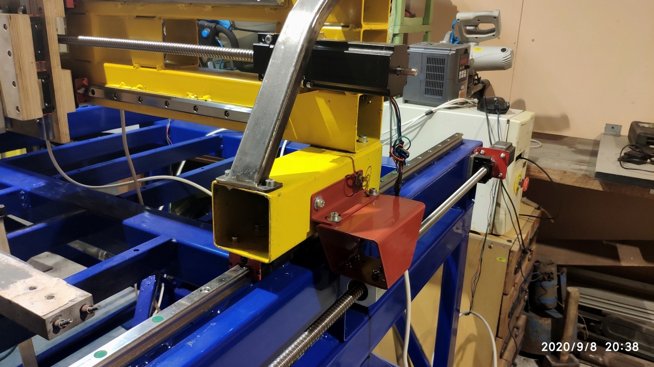 Давно не писал. Вообщем то рама надеюсь отстоялась. Был достаточно нудный процесс шабрения приваренных пластин под посадочные места профильных направляющих. Один день одна ось, другой день другая ось. Поверочной линейки не было. Скоро выложу шок- контент для гуру чпушников. Шабрил болгаркой, потом наждачкой с тяжелой болванкой. Покрашена, направляющие прикручены, были сломаны два метчика сверла (китайские, нарезал аккуратно шуруповертом). Но потом нечаянно купил машинный метчик, у него видимо съем на шаг меньше и очень успешно была нарезана резьба под болты направляющих.