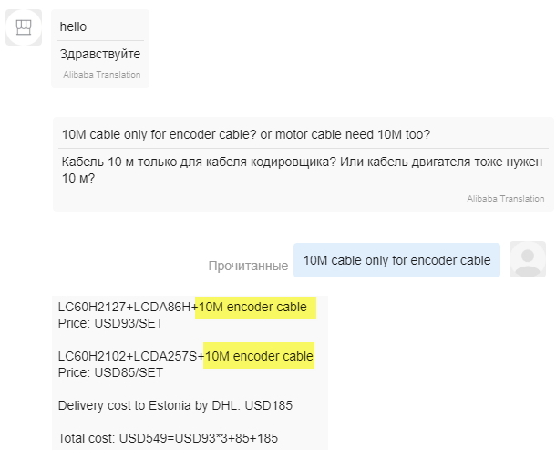 Только что получил посылку с Китая, от официального представителя завода LICHUAN. Заказывал 4 мотора с драйверами + 4 кабеля для энкодера ДЛИНОЙ 10 МЕТРОВ, в итоге: все кабеля в комплекте по 2,6метров...