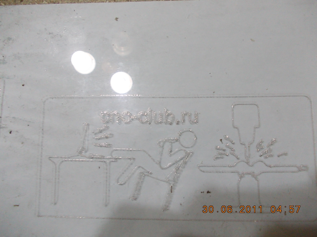 Nick садист нарисовал картинку в непнятном для многих прог. ЧПУ формате. Пришлось ставить прогу R2V и переводить картинку в dxf. Перевод занял больше времени чем написать Gcode и выжечь его на станке :)