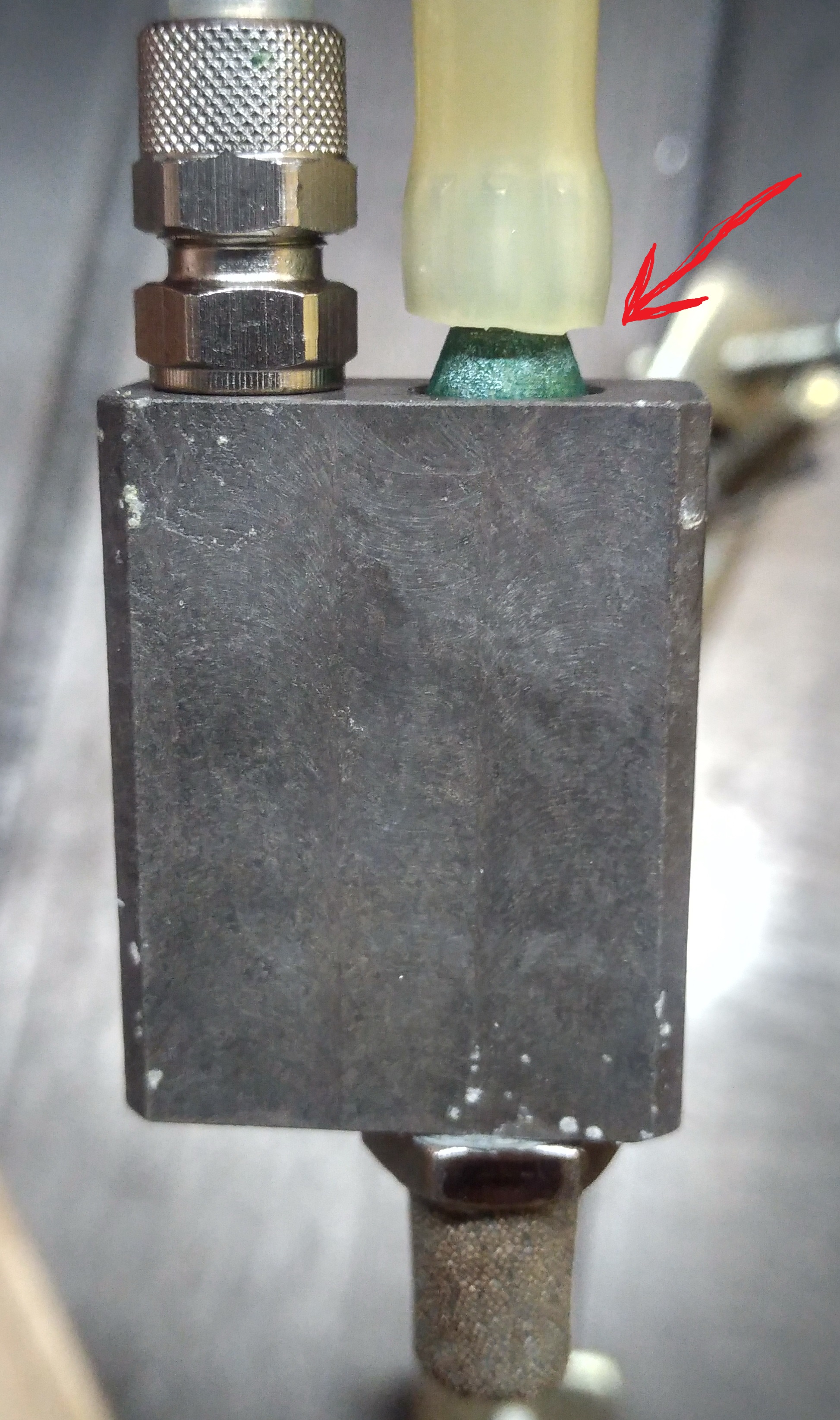 Красная стрелка - плунжерный насос Штиль, окислился и стал зелёным, кажется бронза (была с покрытием, выглядело изначально как нержавейка).