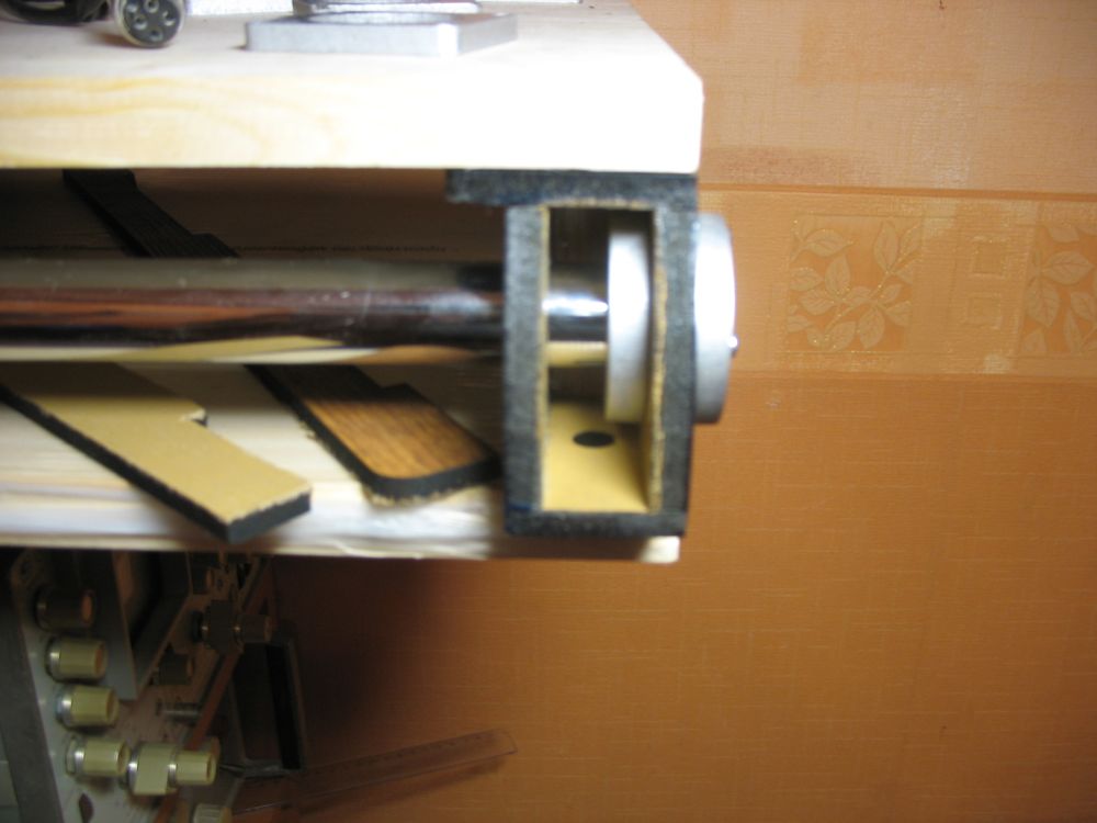 Дальше процесс склейки, если отдельно каждая деталь мдф кажется хлипковатой, то при склейке в изделии становится крепкой и прочной. Клеил эпоксидкой , те детали которые резались из 8мм ламината были ламинированы с обоих сторон , ту сторону которая попадает под склейку надо пошкурить чтоб клей зацепился лучше. А вообще стараюсь внешней стороной корпусной детали делать внешнюю сторону ламината, как там по классификации стирания ламинат 32 класса )))