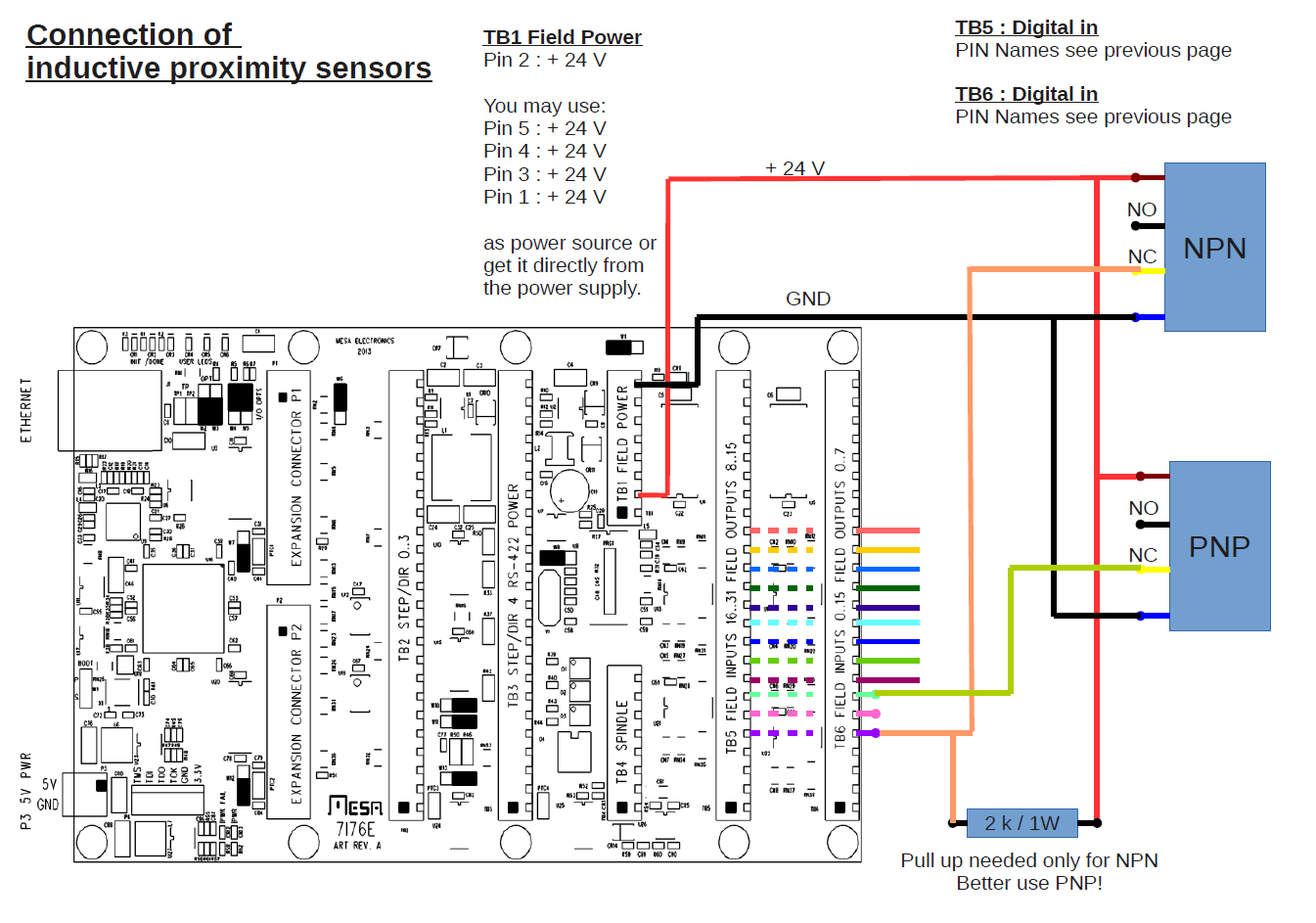 Получается один контакт на "землю" - А2, второй на пин платы на вывод сигнала - А1. (плата MESA 7i76E)