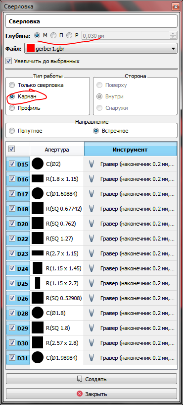 Полный нубас в теме фрезеровки плат, но есть ряд пониманий благодаря пердолингу 3д принтеров и немного попрактиковался на 3018 с фанерой, алюминием, лазерной гравировкой. С импортом проблем не возникло, на вопросы ответы были найдены, но не могу пока точно узнать - чем "профиль" отличается от "кармана"? Карман - чтоб выбирать полигоны, например пятаки после маски?