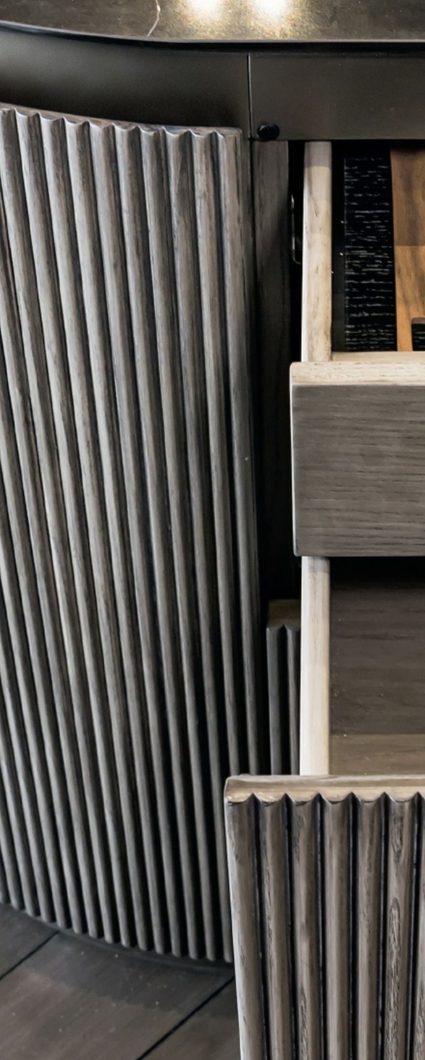 Нужны распашные терминальные радиусные фасады вот с такой фрезеровкой.