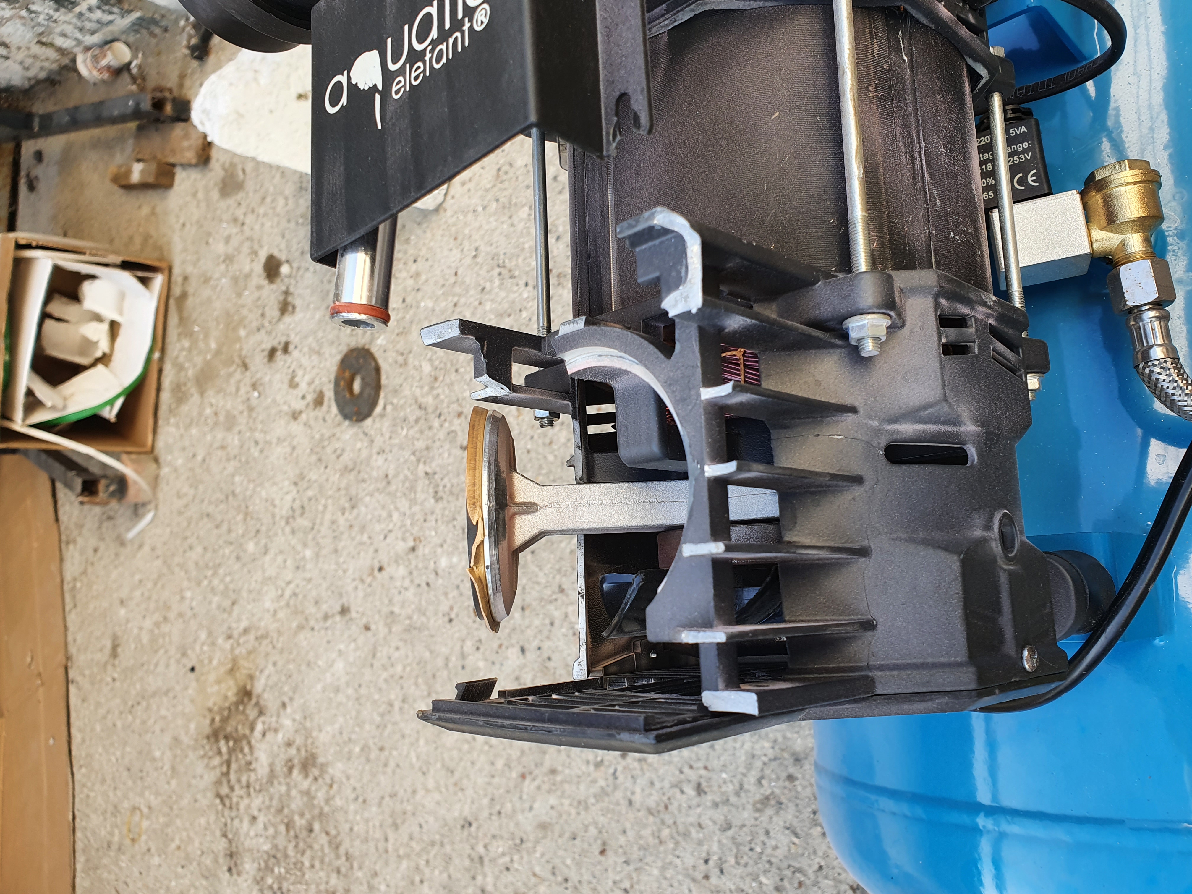 Безмасляный компрессор, который у меня был: "Aquatic Elefant XY-5850". (Бак на 50л, один двигатель(два цилиндра))