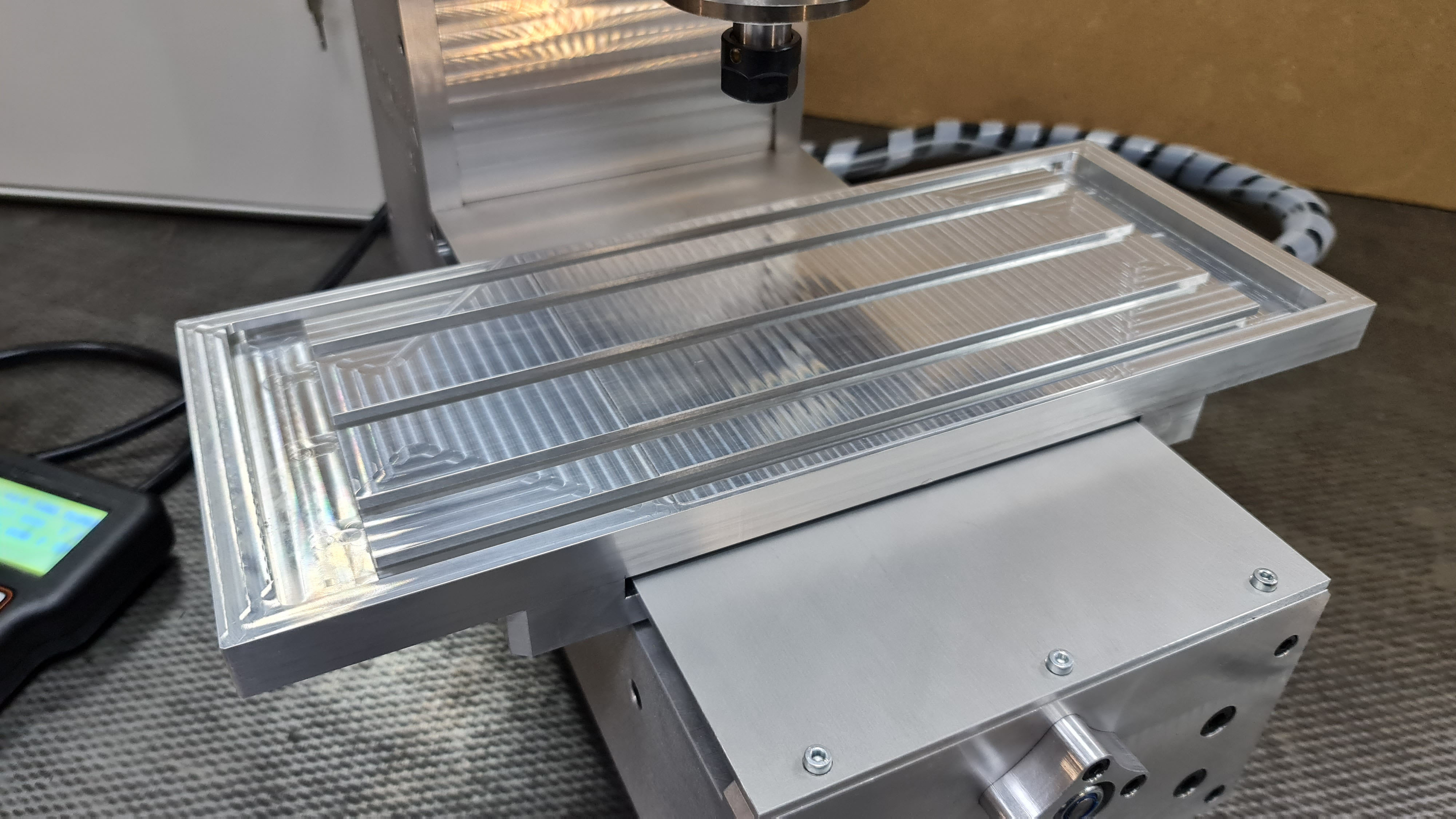 С точки зрения механики всё отлично. Я фрезерую посадки подшипников 32-60мм в дюрале. Работал фрезой сковородка от Максима Дружинина и намерял перепад в 5 соток. Позвонил Наилю, он подсказал как всё промерять. Промерял индикатором на стекле, записывал перепады. Реальный перепед оказался 2.5 сотки на 200мм рычага. Это очень хорошо.