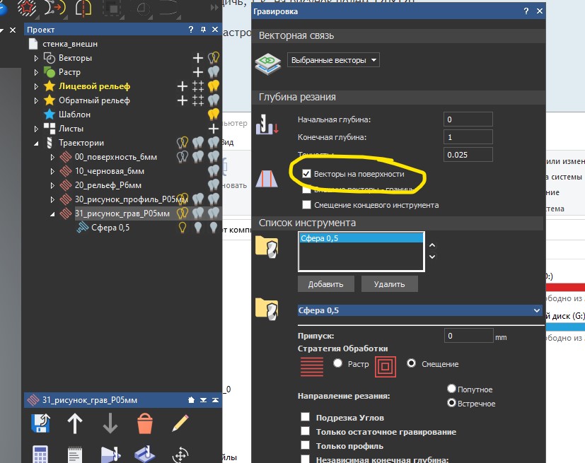 Как наложить траекторию гравировки на рельеф?