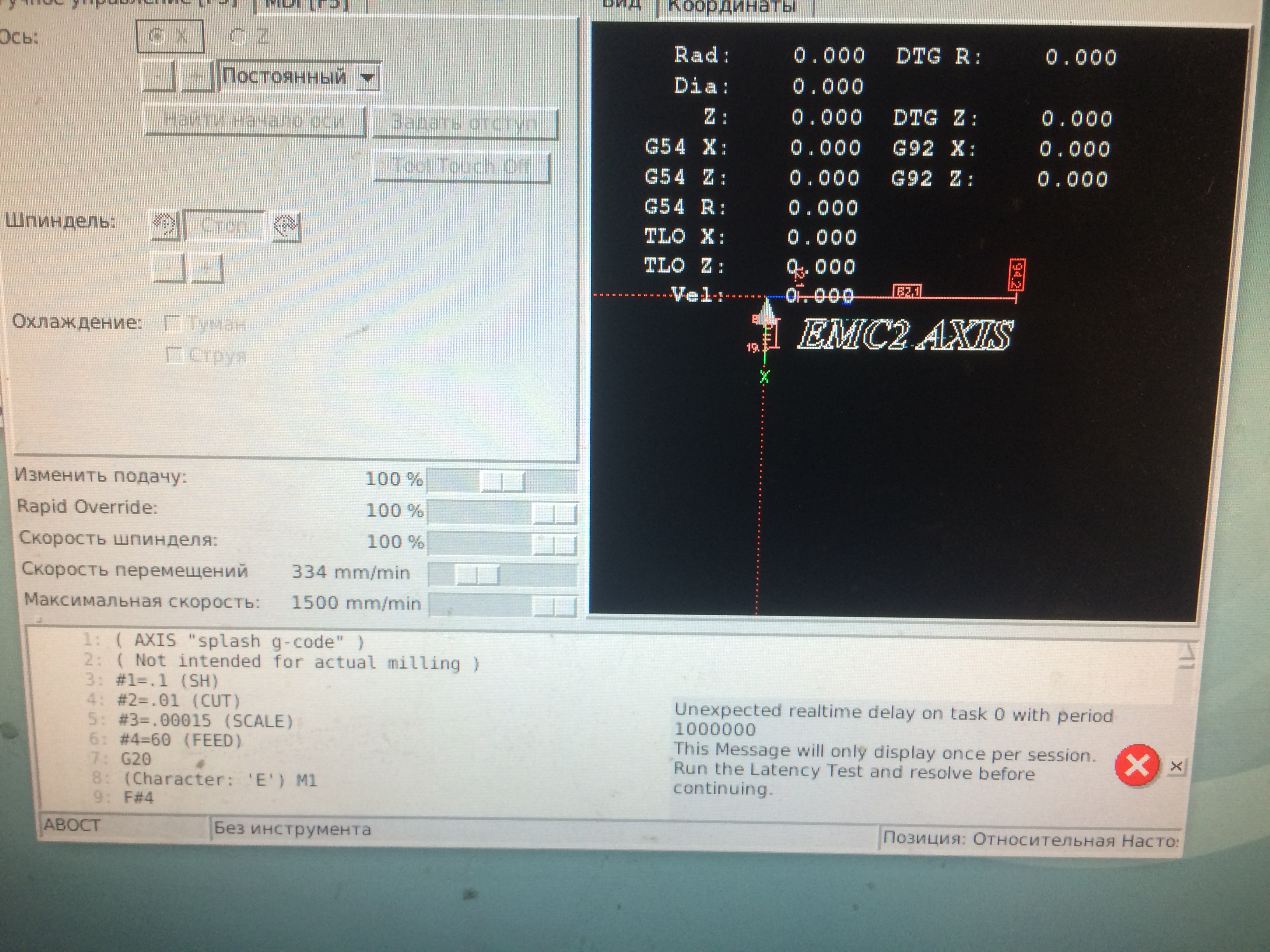 Вообще у меня linux cnc немного поругивается при старте на скорость отклика компьютера. Компьютер двухядерный. Но неужели от этого такое может быть ритмичное толчковое ?