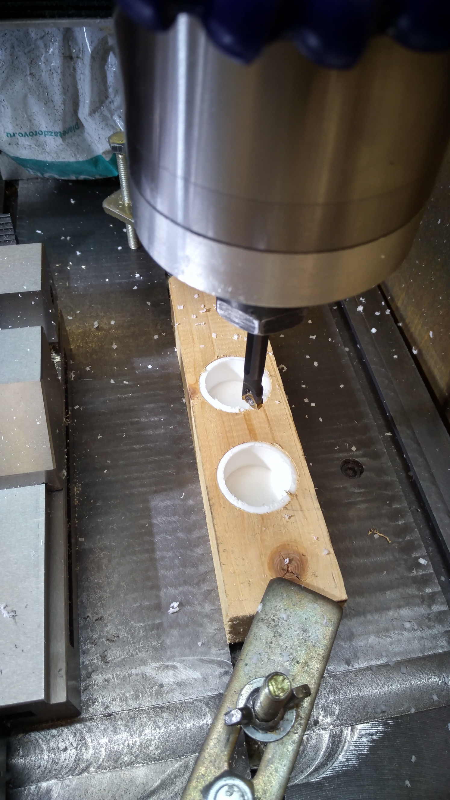 Зажать по простому в токарный не получалось, стенки прогибались, а делать оправку и переводить дюраль или пластик не хотелось...