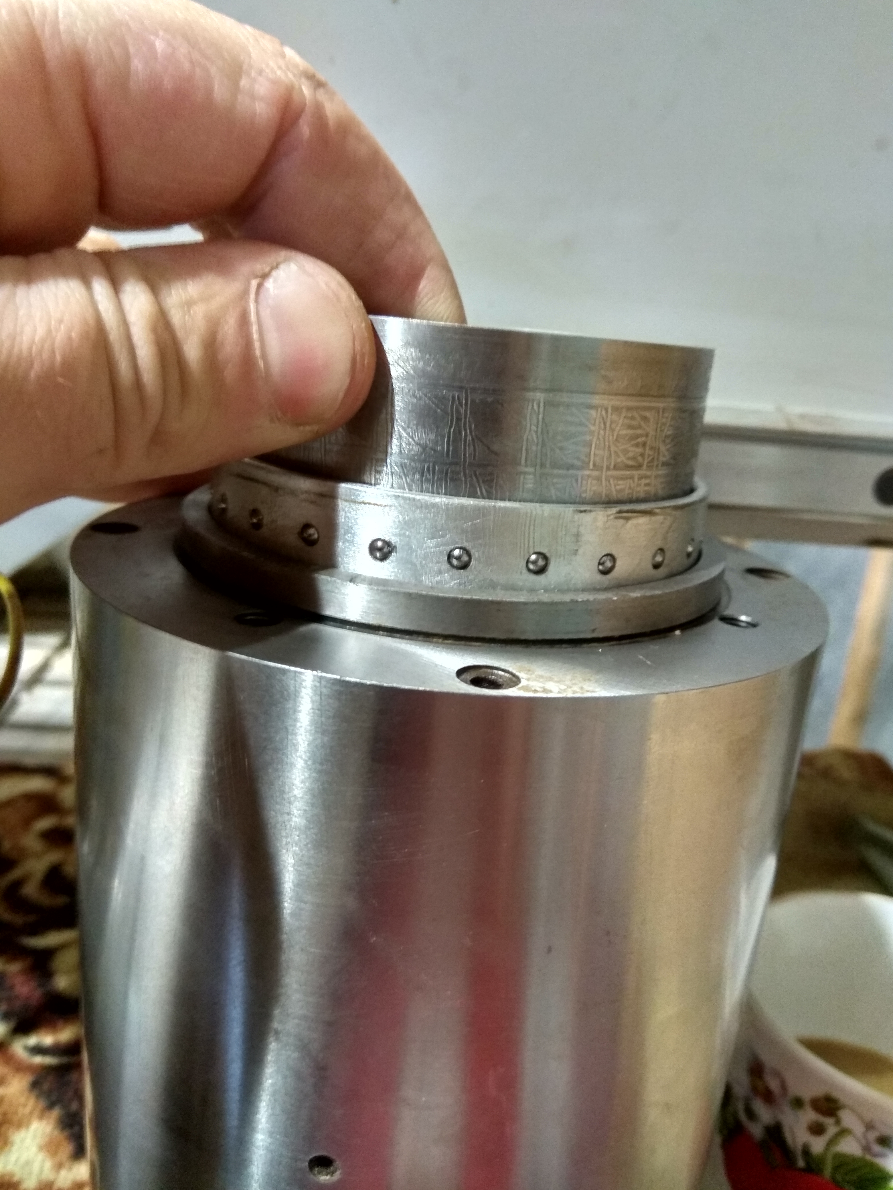 Короче верхний корпус находится в большом алюминиевом "сепараторе" высотой примерно 60-80 мм, в котором находится шарики.