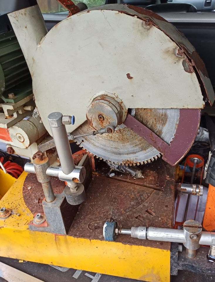 На работе делали торцовки с кнопки, двигатель крутит постоянно, опускание с кнопки, привод пневмоцилиндр, загатовку торцуют сразу две торцовки, выставлены в шаблоне.
