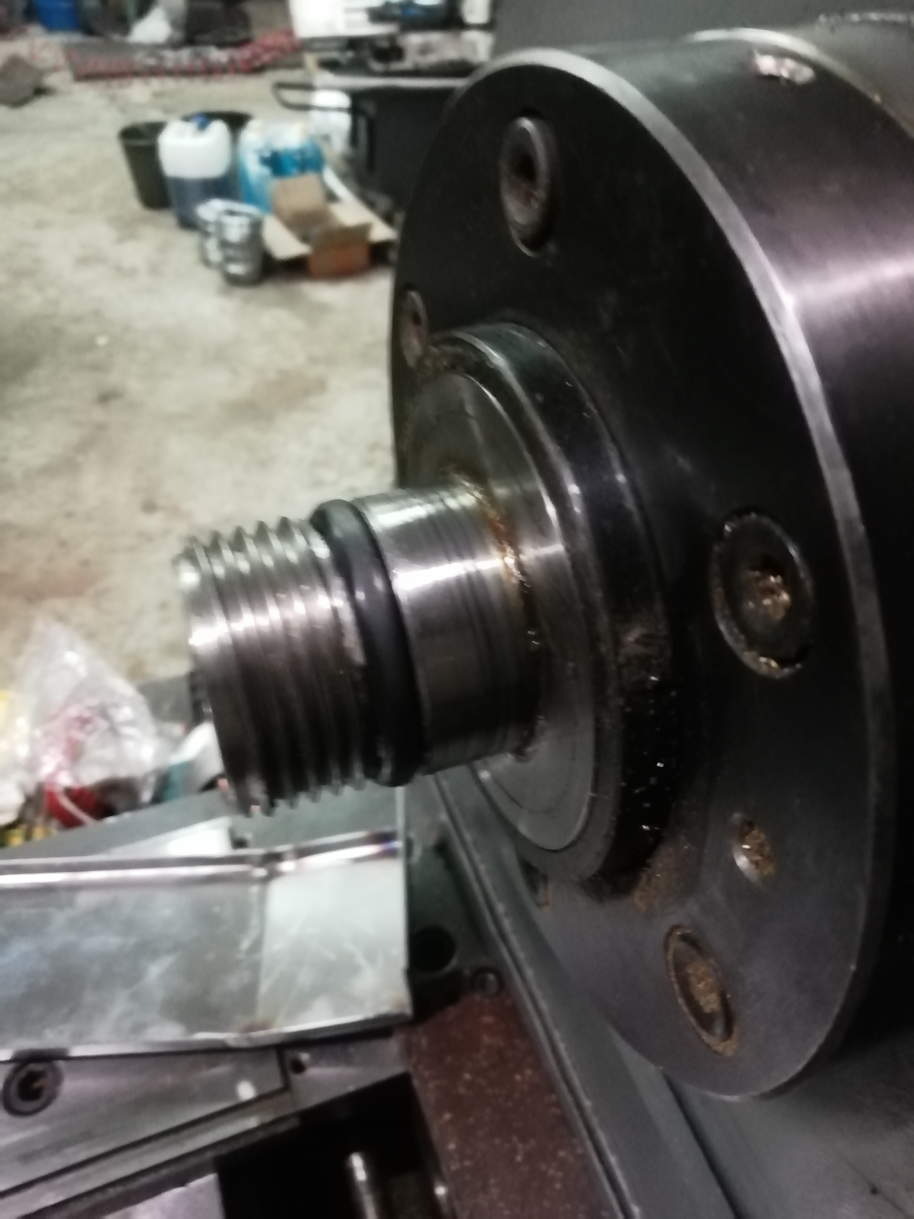 Отмечусь для проформы)) Дела идут, но медленно. Работаем по вечерам над станком и то не каждый день. Помыли весь, установили асинхронник 3квт, энкодер на шпинделя, сделали обе опоры на поперечку и механизм натяга винта. Сейчас занимаемся централизованной смазкой и кожухами ( хотим попробовать сож).
